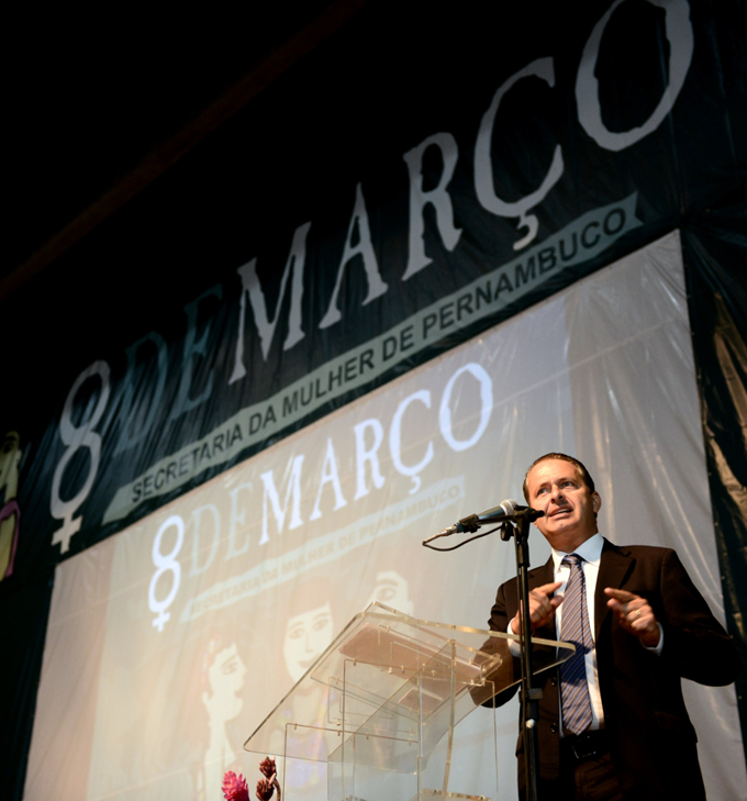 Em evento para comemoração do Dia Internacional da Mulher, nesta segunda-feira (18), no Centro de Convenções, o governador de Pernambuco e presidente Nacional do PSB, Eduardo Campos, voltou a defender a construção de um país mais igualitário entre mulheres e homens. A solenidade reuniu quase duas mil pessoas de todas as regiões do Estado. Ao lado da primeira dama, Renata Campos, e da secretária da Mulher, Cristina Buarque, Eduardo destacou a diminuição na violência de gênero no Estado. “Enfrentamos essa questão da violência, era hora de dar um basta nessa questão. Parecia algo impossível. Hoje, Pernambuco é a experiência mais bem sucedida e aplaudida do País, campeão na redução de violência contra a mulher”, afirmou. O governador sugeriu ainda que é preciso aproveitar a crise financeira mundial como uma oportunidade. “Estamos num processo de construção de um novo Brasil, que precisa também de um novo pacto social e político. Não vamos arrancar o resto de machismo que tem na máquina pública deste País com as velhas lideranças políticas carcomidas, que nunca assumiram os compromissos de romper com esses cacoetes e deformações”, disse Eduardo. Cristina Buarque fez um balanço das ações da secretaria da Mulher desde 2007, e anunciou as metas a serem executadas em 2013. Em 2007, eram 17 estruturas de políticas de gênero, com 146 pessoas trabalhando. Em seis anos, esse número saltou para 390 estruturas e 2.451 pessoas. “Isso nos deixa animadas a seguir na construção de uma sociedade mais igualitária, mais generosa, mais pacífica”, observou a secretária. Na ocasião, foram assinados dois termos de cooperação técnica, um para fortalecimento da rede de delegacias especializadas e um para parceria de curso de qualificação de 180 mulheres que trabalham no processamento de mandioca. O governador assinou ainda o edital para seleção simplificada da secretaria da Mulher. “Precisamos fortalecer um olhar que respeite as diferenças de gênero, que acolha, na máquina pública e na visão do Estado, o grande objetivo de reduzir e exterminar os preconceitos e afirmar que queremos ser uma nação sem as marcas das desigualdades que afrontam nossos corações”, assegurou o governador. |