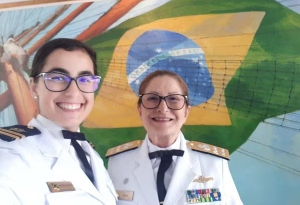 Médica pioneira da Marinha Dalva Maria e a filha, Luciana Mendes, capitã de corveta