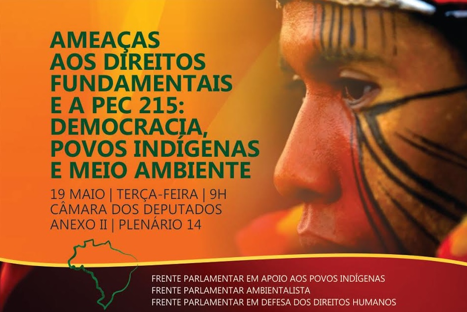As Frentes Parlamentares em Apoio aos Povos Indígenas, em Defesa dos Direitos Humanos e Ambientalista da Câmara dos Deputados realizam uma plenária para debater as “Ameaças aos direitos fundamentais e PEC 215: democracia, povos indígenas e meio ambiente”. Estão convidadas dezenas de entidades representativas da sociedade civil que vão apresentar sua opinião sobre a conjuntura política atual e mecanismos de resistência. As que não puderem participar poderão enviar manifesto aos organizadores. O evento é aberto e acontece no Plenário 14 da Câmara dos Deputados a partir das 9 horas da manhã da terça-feira, 19.