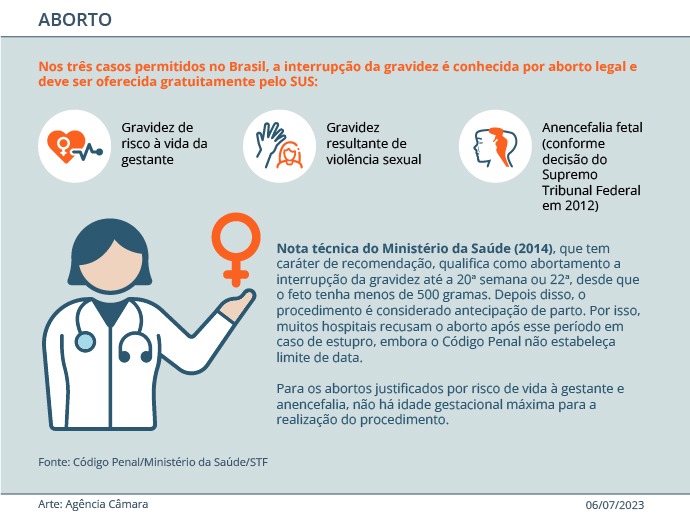 O Projeto de Lei 2521/24 obriga profissionais de saúde, de serviços públicos e privados, a informar às vítimas de estupro, de forma imparcial, que elas têm direito à realização de aborto no caso de gravidez resultante da violência. Eles também deverão indicar o hospital de referência para realizar a interrupção da gestação.