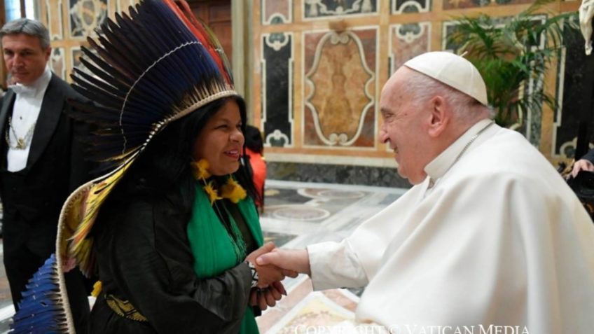 Sonia Guajajara se encontra com o papa Francisco no Vaticano