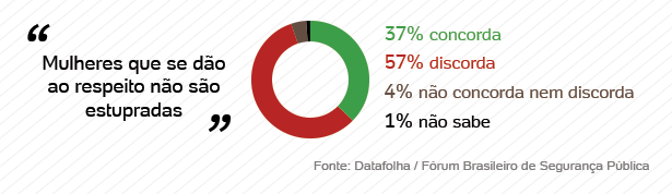 Uma pesquisa encomendada pelo Fórum Brasileiro de Segurança Pública e divulgada nesta quarta-feira (21) revela que um em cada três brasileiros concorda que a mulher vítima de estupro é, de alguma forma, responsável pela violência sexual sofrida. A pesquisa foi realizada pelo instituto Datafolha.
